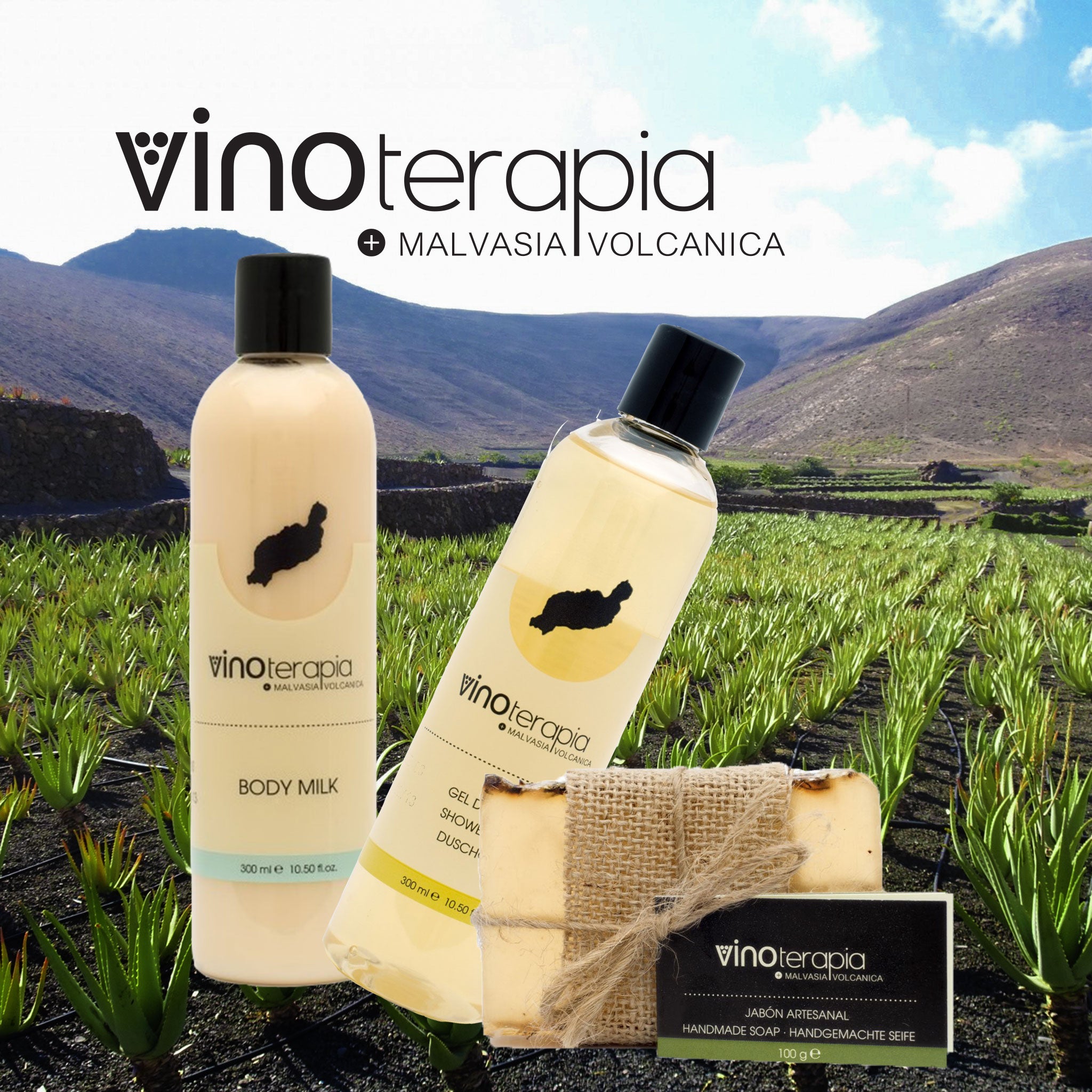 Cosmetic products based on organic Aloe Vera juice and Malvasia Volcanica, the native grape of Lanzarote.